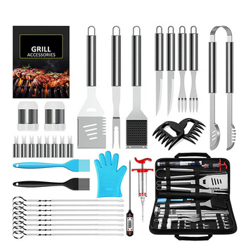 Juego de herramientas de parrilla de barbacoa de acero inoxidable para exteriores de 35 piezas para acampar y cocinar barbacoa